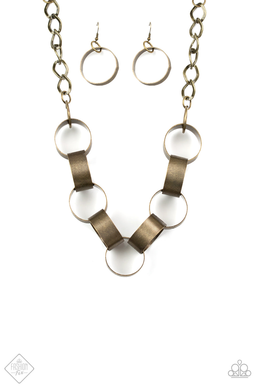 Etched in linear patterns, dramatically oversized brass links interlock below the collar, building into a bold statement-making piece. Features an adjustable clasp closure.