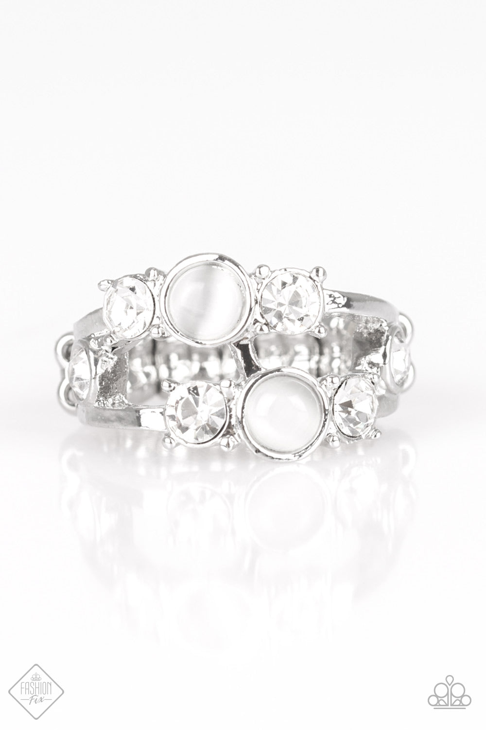 Dainty Back,moonstone,rhinestones,white,Moonlit Masquerade White Ring