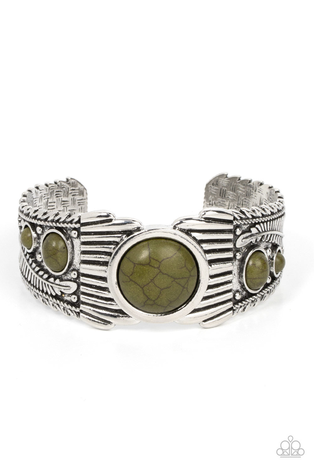 Paparazzi - Mesquite Mesa Green Stone Feather Cuff Bracelet