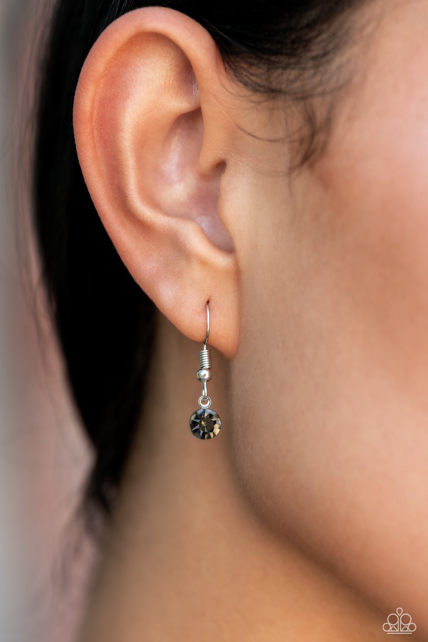 Infused on a classic silver chain, a strand of thick silver curb chain, and a collection of exaggerated, smoky radiant-cut gems in silver pronged fittings combine to create a collision of industrial color around the neckline. An oversized silver lock charm, embossed in white rhinestones, dangles from the gritty display for a touch of soft glitz to the design. Features an adjustable clasp closure.