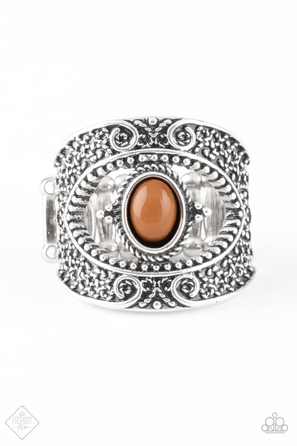 Paparazzi Totally Tourist – Brown Silver Ring – Fashion Fix Sept 2018 Sunset Sightings