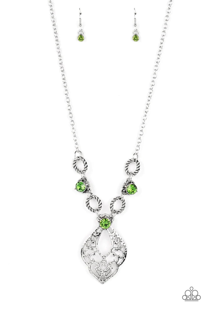 Paparazzi - Contemporary Connections Green Rhinestone Necklace