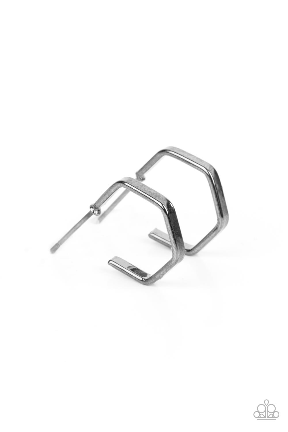 Paparazzi - Haute Hexagons - Black Gunmetal Hoops