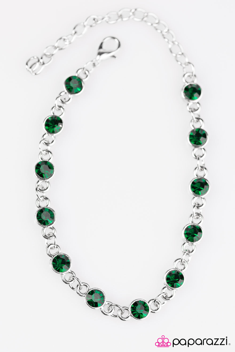 Pressed into the centers of sleek silver frames, glittery green rhinestones link around the wrist in an undeniably sparkly fashion. Features an adjustable clasp closure.