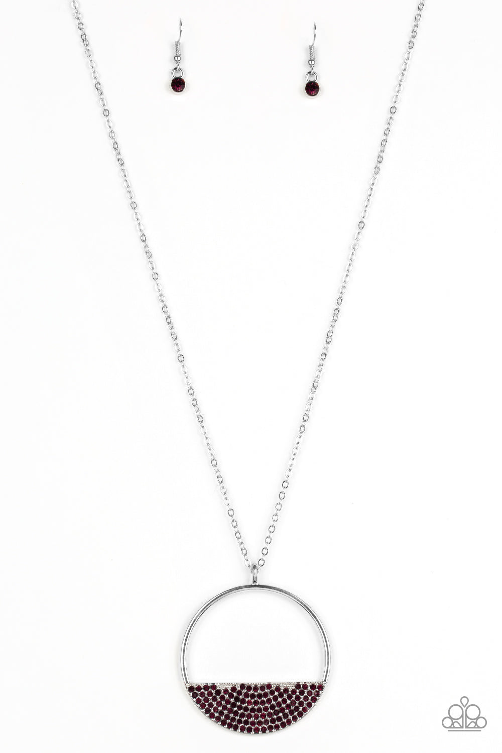 Encrusted in dainty purple rhinestones, a silver crescent frame is pressed into the bottom of an airy circular pendant for a timeless look. Features an adjustable clasp closure.