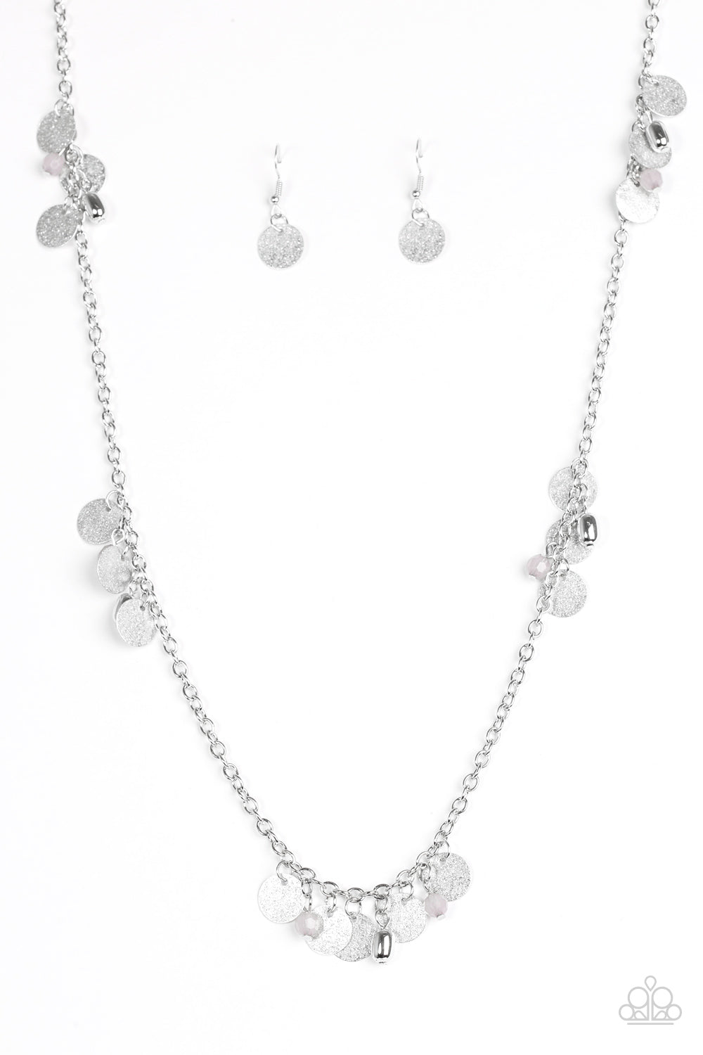 Delicately hammered in blinding shimmer, glittery silver discs join gray crystal-like beading along a shiny silver chain for a whimsical look. Features an adjustable clasp closure.