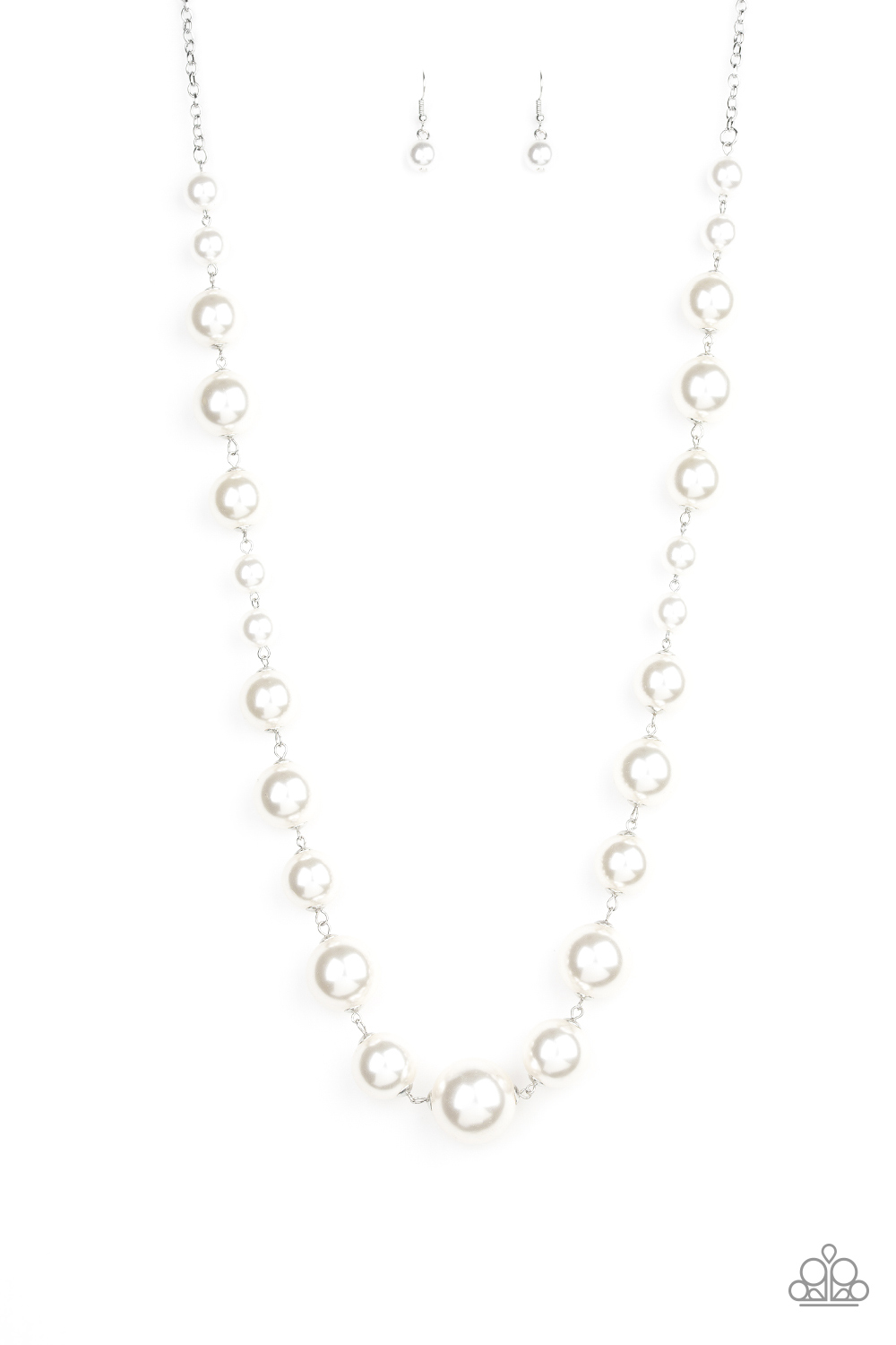 Infused with dainty white pearls, a bubbly collection of oversized pearls link across the chest for a timeless finish. Features an adjustable clasp closure.