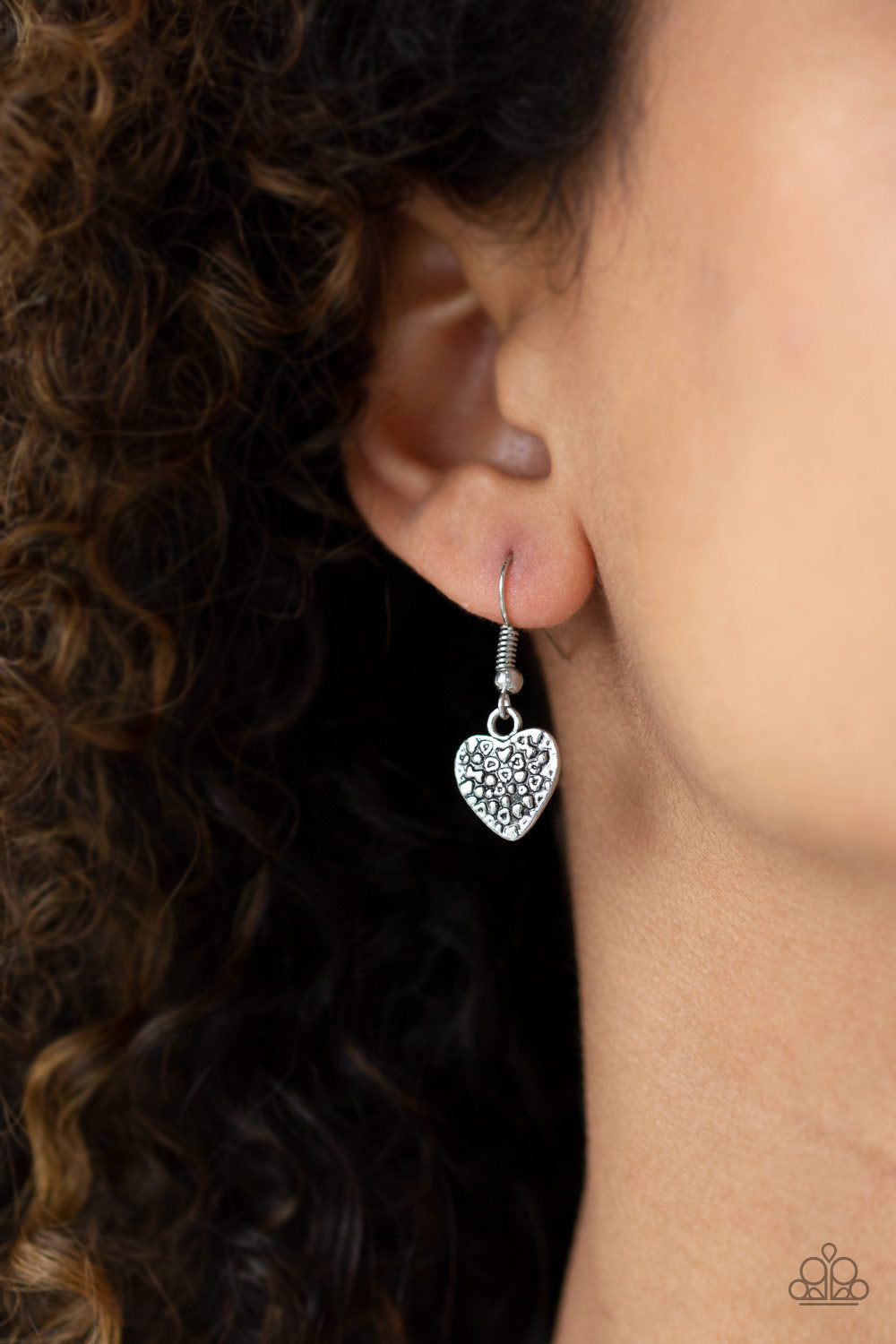 Featuring an array of floral patterns, a collection of silver hearts swings from the bottom of a shimmery silver chain. Alternating charms are brushed in a minty green finish, creating a colorful fringe below the collar. Features an adjustable clasp closure.