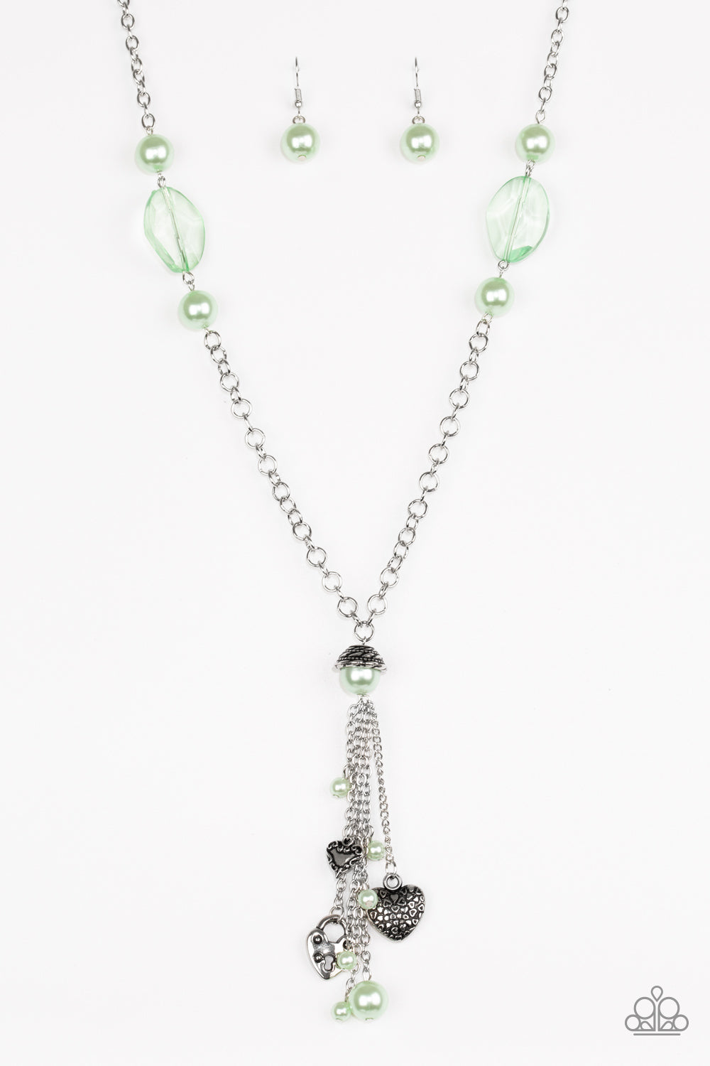 green,hearts,long necklace,Pearls,Heart Stopping Harmony Green Necklace