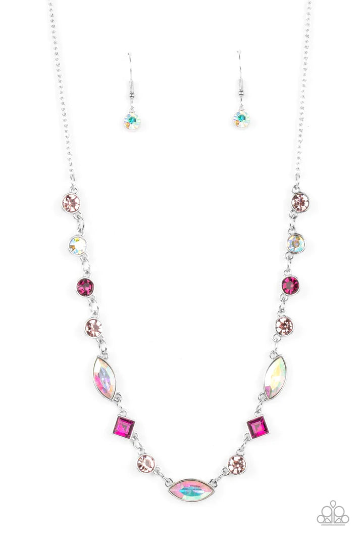 Varying in geometric shapes and shades of pink, glittery rose and fuchsia gems are sprinkled between iridescent rhinestone accents for a dreamy refined, and irresistible finish. Features an adjustable clasp closure. Due to its prismatic palette, color may vary.