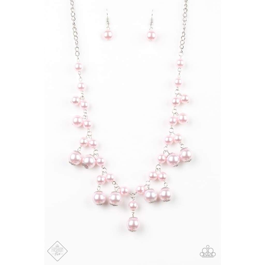 A collection of bubbly pink pearls fall into an effervescent fringe below the collar. The variating sizes of the pearls create carefree movement, while the ornate casings bring a vintage flair to the timeless piece. Features an adjustable clasp closure.