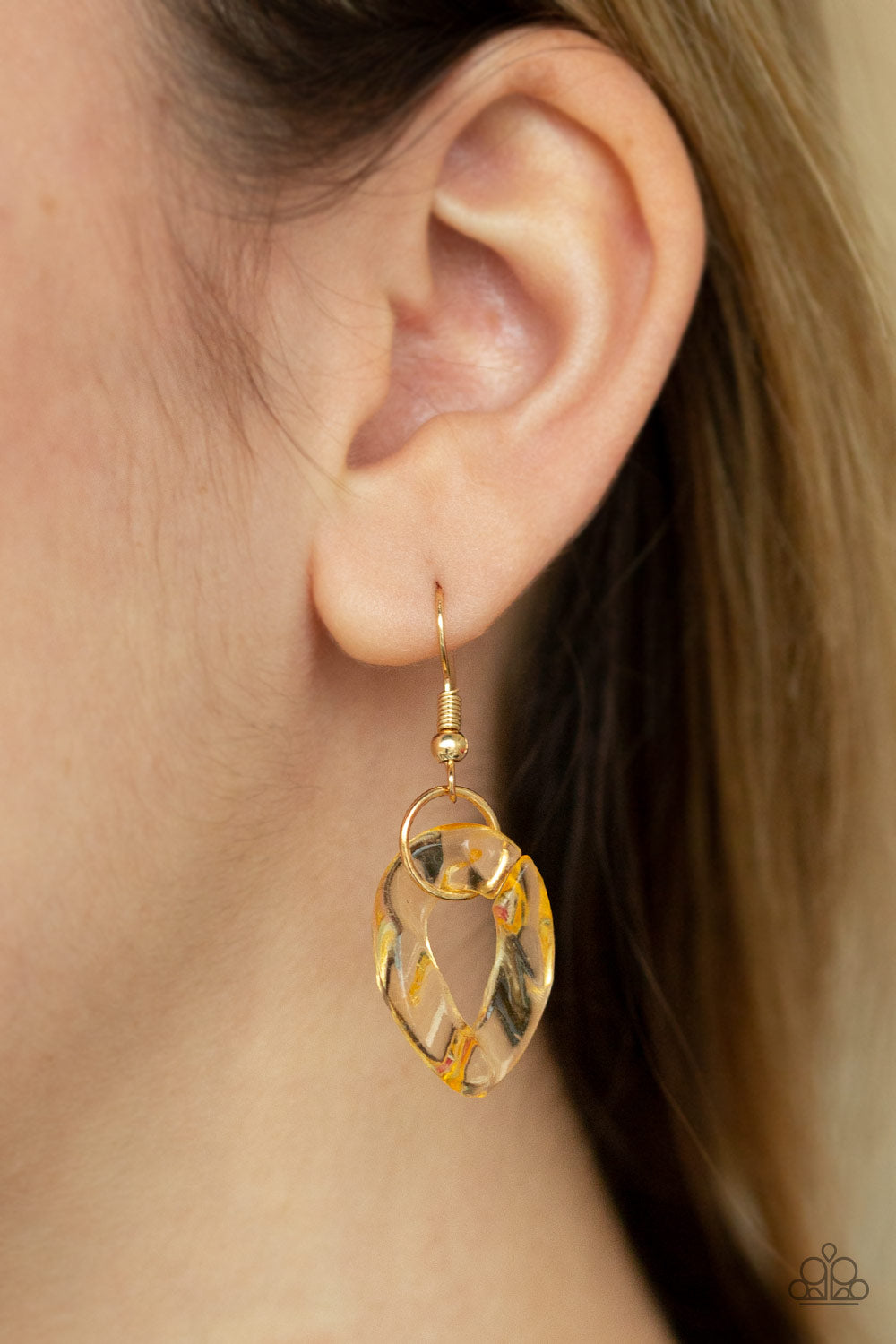 Glassy gold links connect below the collar for a bold statement-making look. Features an adjustable clasp closure.