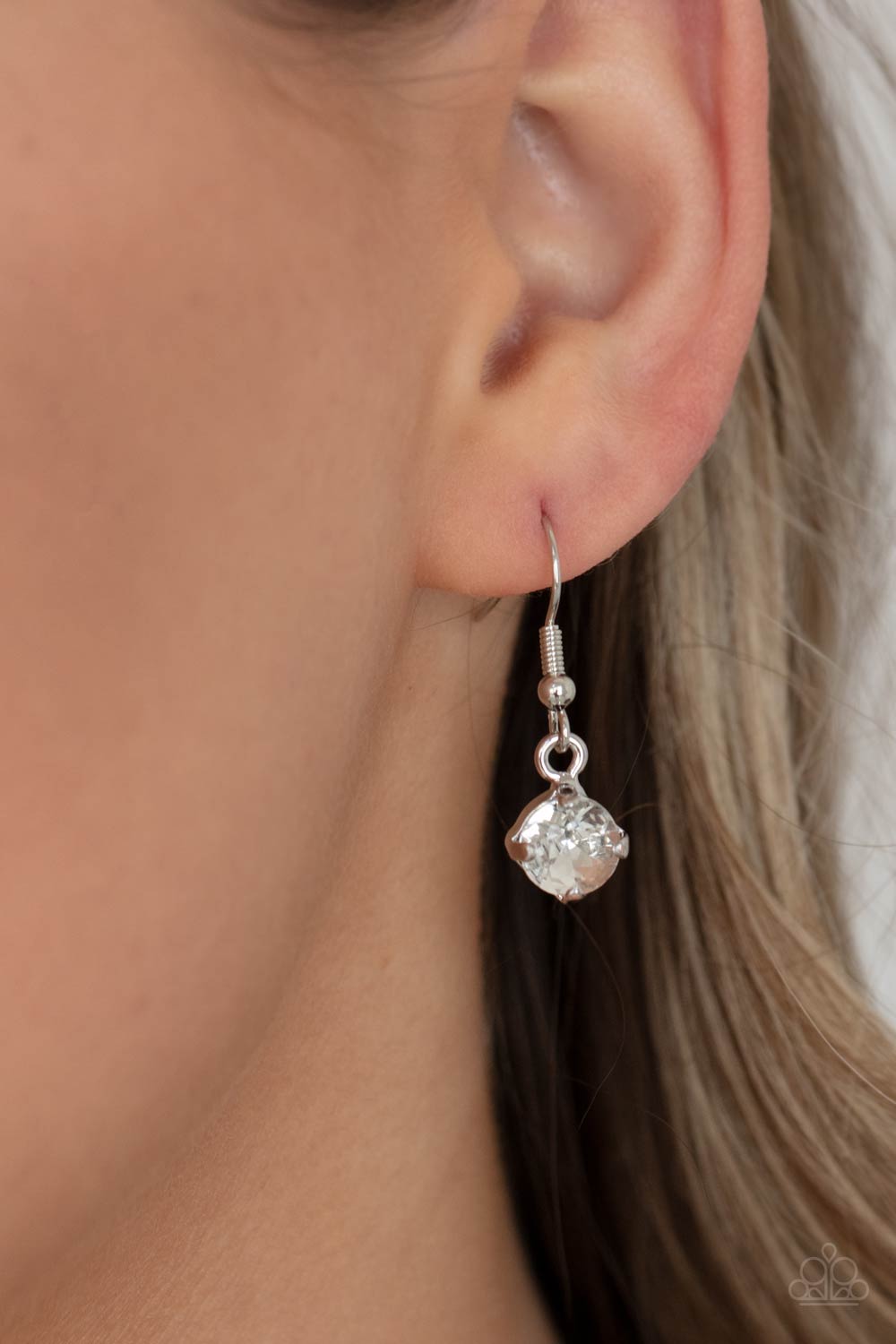 A glittery white rhinestone is fitted inside a pronged silver frame, creating a dramatically timeless pendant below the collar. Features an adjustable clasp closure.
