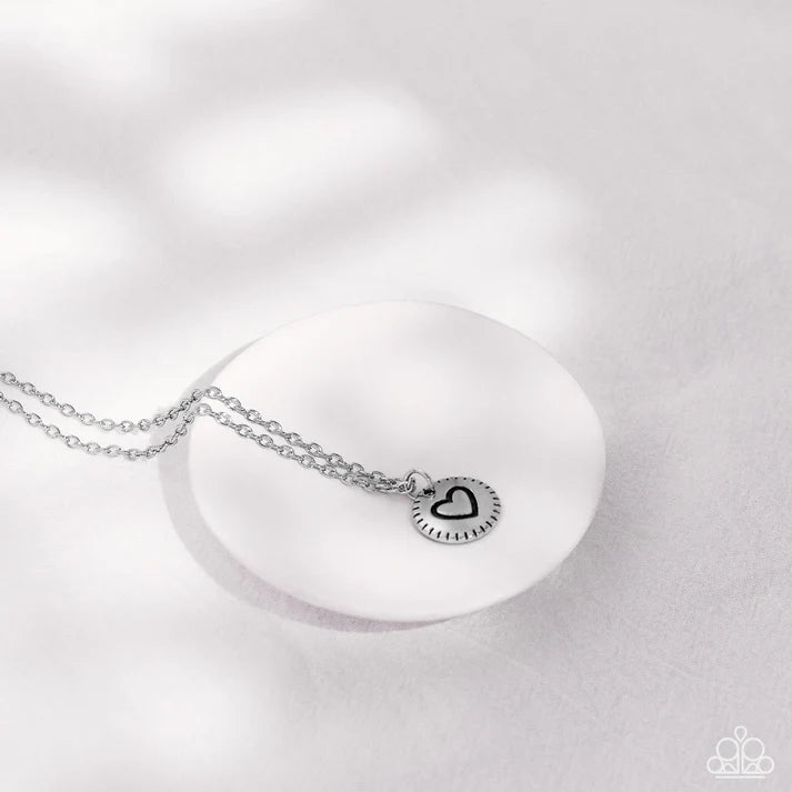 Stamped in a heart burst pattern, a round silver pendant is suspended from a dainty silver chain for a sentimentally sleek design. Features an adjustable clasp closure.